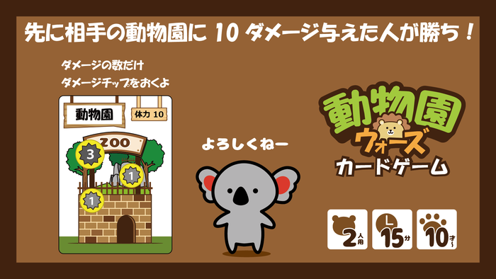 「動物園ウォーズ カードゲーム」は、2人用対戦カードゲームです。